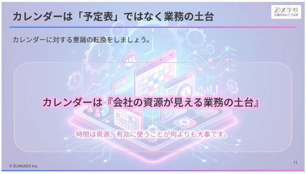 DX学校広島中央おりづる校では、単なるツールの導入だけでなく、それをどう活かして業務を変えていくか、その「基礎知識」と「使いこなし方」をしっかりサポートしています。